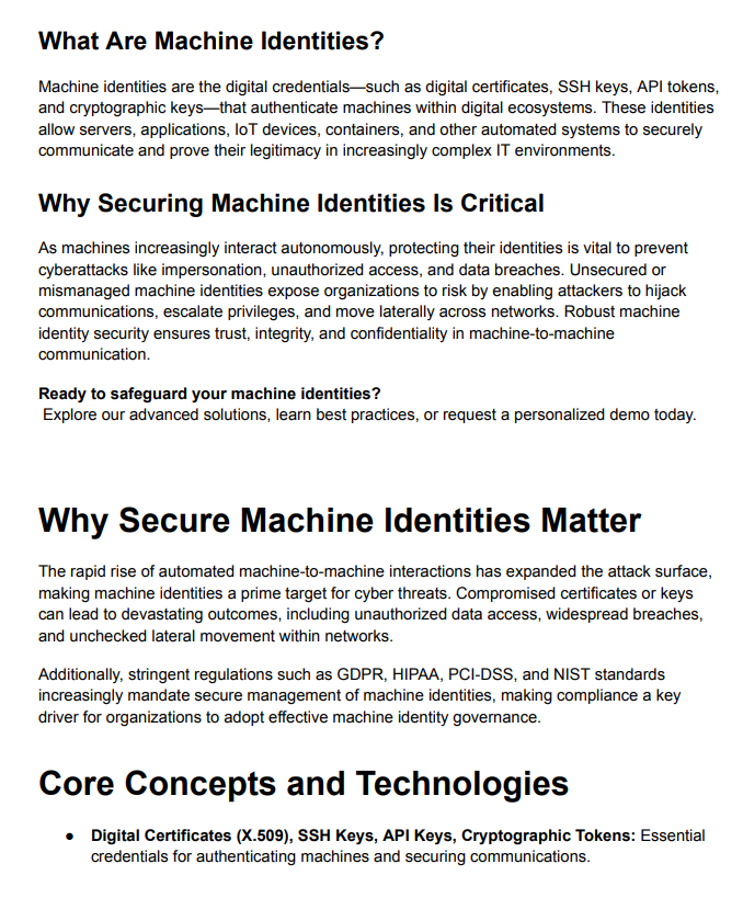 - Whitepapers outlining best practices for effective machine identity lifecycle management.